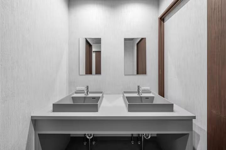 バスタブ付きお風呂が1つ(1F)、シャワールームが1つ(1F)、ウォシュレット付きトイレが2つ(1F・2F)