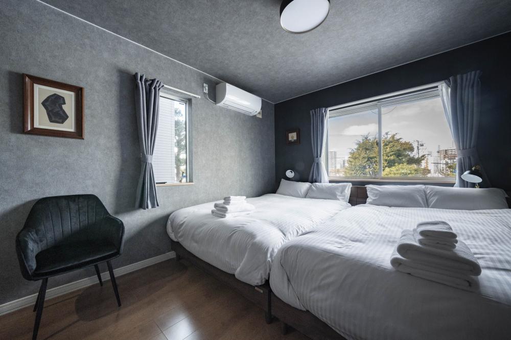 ベッドルーム1:ダブルベッド2台(2階・冷暖房エアコン)