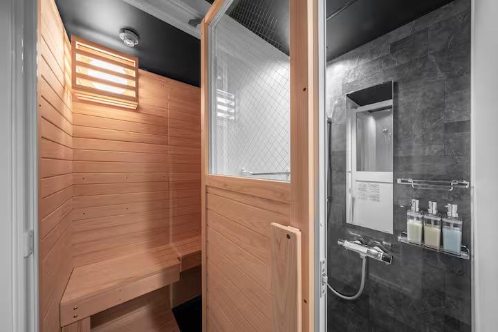 プライベートサウナ(1F)、バスタブ付きお風呂が1つ(1F)、シャワールームが2つ(1F)、ウォシュレット付きトイレが3つ(1F・2F)